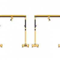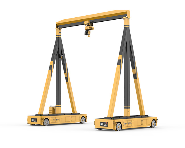 OMV智能龍門吊由兩臺獨立的全向平臺轉(zhuǎn)運車上安裝龍門吊組成,兩臺平臺轉(zhuǎn)運車具有雙車聯(lián)動功能,共同托舉龍門吊吊裝物料進行前進、后退、橫移、斜行、旋轉(zhuǎn)等全方位任意方向移動。