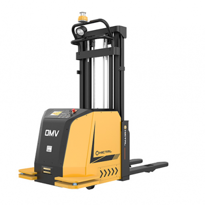 匯聚OMV采用舵輪驅動系統,托盤堆垛AGV具有結構簡單,使用可靠,轉彎半徑小,可實現對貨物的精準搬運,堆垛.