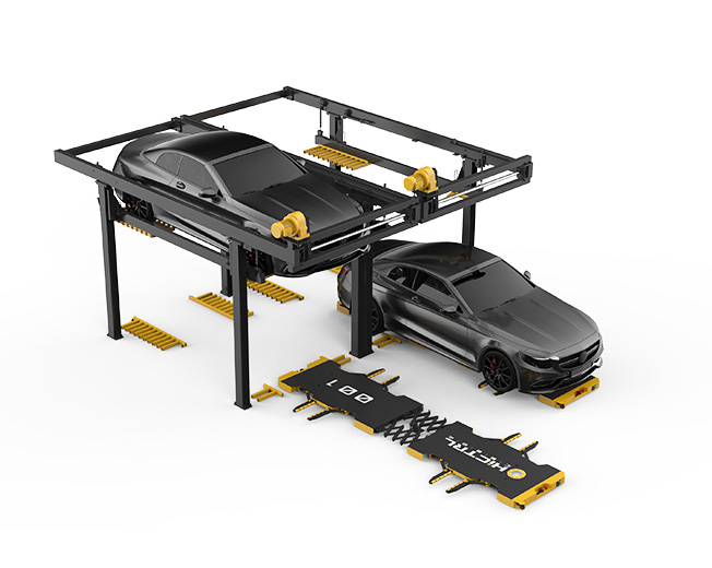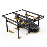 梳齒二層簡易升降智能設(shè)備是專門針對自主研發(fā)的夾持式停車機(jī)器人系統(tǒng)相配套而研發(fā)的停車設(shè)備。該設(shè)備有效利用上下兩層空間,由主體框架、提升驅(qū)動(dòng)、左右梳齒架組成,在調(diào)度系統(tǒng)的控制下,夾持式停車機(jī)器人將車輛搬運(yùn)至設(shè)備梳齒架上,左右梳齒架將車輛提升至第二層,設(shè)備底層可再停一輛車。不僅可以提升車位數(shù)量,更可以對傳統(tǒng)的兩層升降橫移或簡易升降等類型車庫做智能化升級(jí),實(shí)現(xiàn)無人智能化停取車。