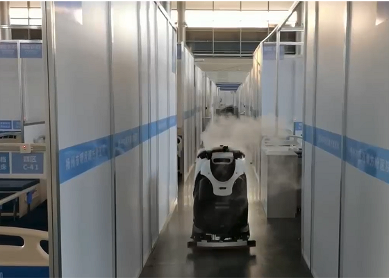 “小白,你好!請給手消消毒!”一名疫情防控工作人員路過正在工作的消毒機器人時,靠近機器伸出雙手,很快就完成了一次消毒。搭載紫外線燈、超干霧發生器和等離子空氣凈化等消毒模塊的消毒機器人,能在場館內自由穿梭,可以24小時“不眠不休”。