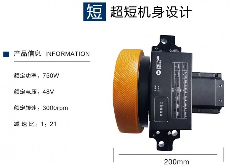 后背式伺服輪驅模組的驅動器安裝在電機后面,電機采用超短機身設計,同時安裝支架設計在輪邊減速器上,大大減少了對電機的徑向負載,延長了電機的使用壽命。