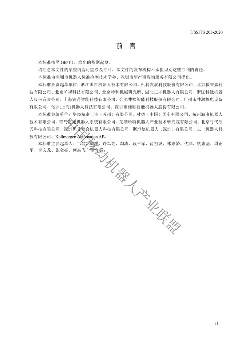 本標(biāo)準(zhǔn)參編單位∶華曉精密工業(yè)(蘇州)有限公司、林德中國(guó))叉車(chē)有限公司、杭州海康機(jī)器人技術(shù)有限公司、青島梅通機(jī)器人系統(tǒng)有限公司、蕪湖哈特機(jī)器人產(chǎn)業(yè)技術(shù)研究院有限公司、北京時(shí)代辰天科技有限公司、深圳優(yōu)芝智合機(jī)器人科技有限公司、斯坦德機(jī)器人(深圳)有限公司、三一機(jī)器人科技有限公司、KollmorgenAutomation AB。