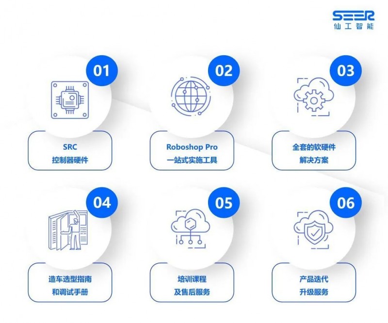 為了幫助客戶更輕松地實(shí)現(xiàn)打造 AMR 的需求,仙工能為客戶提供全套方案支持,方案中不僅是一臺 SRC 控制器,而且是涵蓋硬件、軟件、造車技術(shù)方案、選型及調(diào)試手冊、培訓(xùn)及服務(wù)等全套技術(shù)服務(wù),消除一切造 AMR 的障礙。
