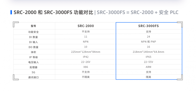 那么 SRC-3000FS 相比于 SRC-2000 的升級點(diǎn)在哪里呢?看這張圖就能快速理解:SRC-3000FS = SRC-2000 + 安全“PLC”。