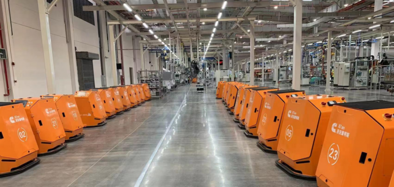 蔚來與井源機電達成合作,引進的AGV主要用于前橋、后橋、電池總成與車身的合裝。從2018年5月27日首臺ES8量產車下線,到2021年4月7日,蔚來僅用1,046天完成了高端智能電動汽車從1到100,000臺的跨越,和用戶、合作伙伴一起創造了行業新速度。年產10萬輛高端新能源乘用車建設項目先后引入井源機電AGV運用于焊裝車間、總裝車間,雙方攜手合作多年,共同見證蔚來10萬臺量產車的順利下線。