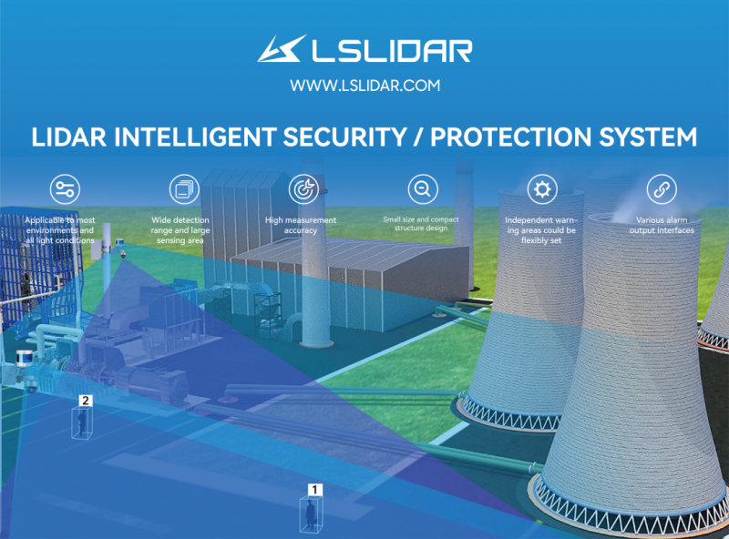 鐳神智能防入侵安防系統采用自主研發的3D激光雷達,獲取監測區域內的實時三維點云數據,通過用戶需求所定制的算法,全天候偵測障礙物的入侵情況,追蹤障礙物軌跡,輸出報警信號,保障監測區域內安全??捎行椭I重地安全防護。