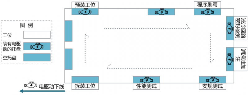 區(qū)別于原先的單工位測試,回轉(zhuǎn)式自動測試在現(xiàn)有下線測試形式中速度最快、效率最高,可使裝載有電驅(qū)動的托盤在線體上連續(xù)運行,并與各測試工位自動對接測試,輕松應(yīng)對多達(dá)數(shù)十項的測試項目,實現(xiàn)電驅(qū)動的連續(xù)下線。