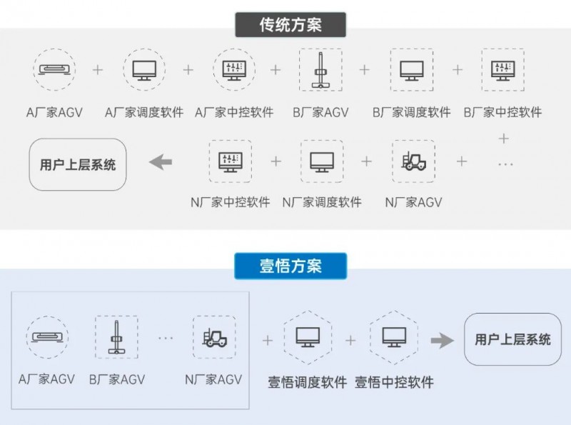 同等作業效率下,壹悟科技星羅自動化工廠解決方案,不僅可以輕松實現“一套系統調度全場”,大幅降低改造成本與對接工作量,還可以通過軟件靈活配置和修改流程,快速適應業務變化。
