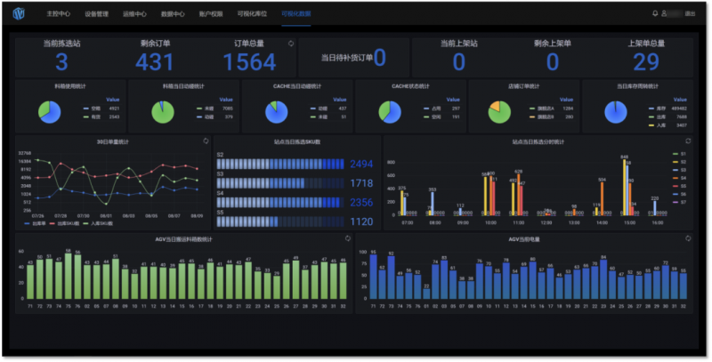 任務狀態可視化、設備運行狀態可視化、庫位使用情況可視化。