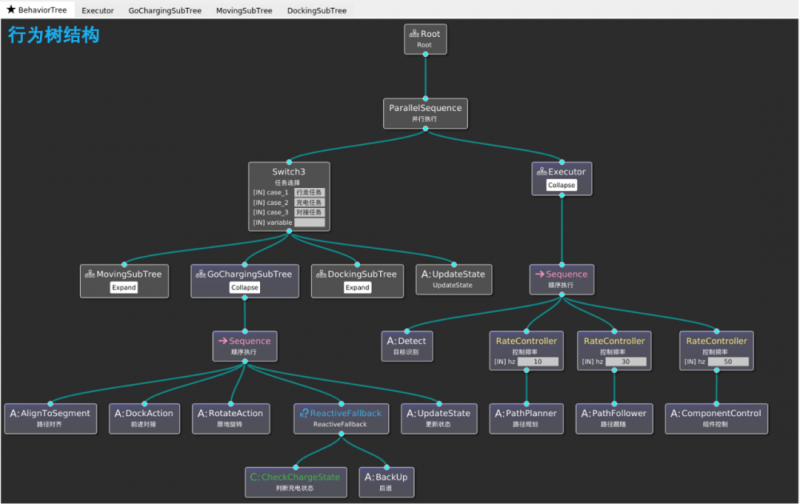 MATRIX平臺(tái)80%以上的功能為標(biāo)準(zhǔn)化功能,為各產(chǎn)品系列所共用,任務(wù)調(diào)度邏輯基于行為樹引擎構(gòu)建,可針對(duì)客戶需求,靈活調(diào)整行為樹插件與算法參數(shù),快速交付新型號(hào)和第三方設(shè)備集成。