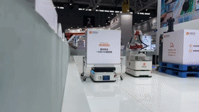 展會現(xiàn)場,所有的AMR機器人都由同一套調(diào)度管理系統(tǒng)CLOUDIA的指揮,在有限的展臺空間內(nèi)同場運行,相互協(xié)調(diào),協(xié)同作業(yè),實現(xiàn)狹窄空間內(nèi)的異構(gòu)機器人集群混場調(diào)度應用。