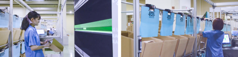 ??禉C器人系統與PPS和SAS無縫對接,PPS通過投影的方式照亮需上架和下架的貨的倉位,具備放錯報警機制,SAS增加開門動作,有效防呆,防止人工投錯,提升揀選正確率至近100%。