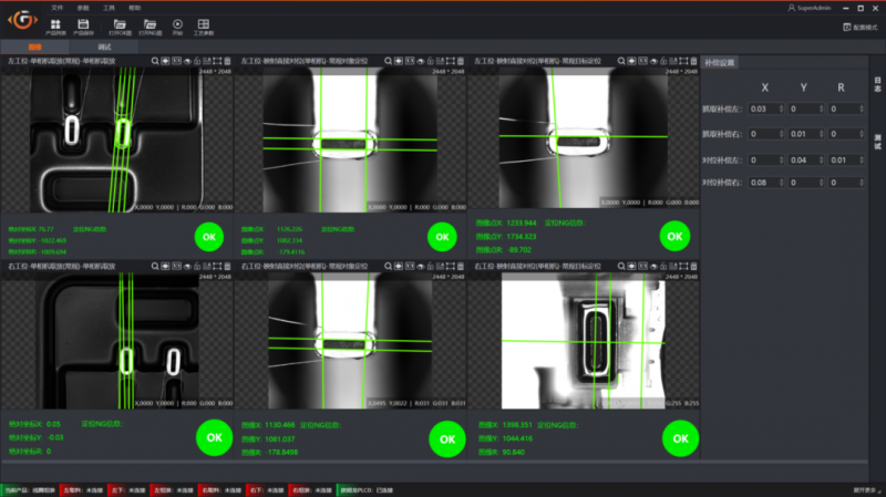 框架軟件針對(duì)于3C行業(yè)定位應(yīng)用積累了大量組裝定位和點(diǎn)膠應(yīng)用模板,能夠兼容多相機(jī)、多吸嘴、多拍照位、分離軸和飛拍等各類機(jī)構(gòu)流程,同時(shí)框架軟件提供定位精度分析排查等自動(dòng)化問題排查工具,快速定位解決生產(chǎn)問題。