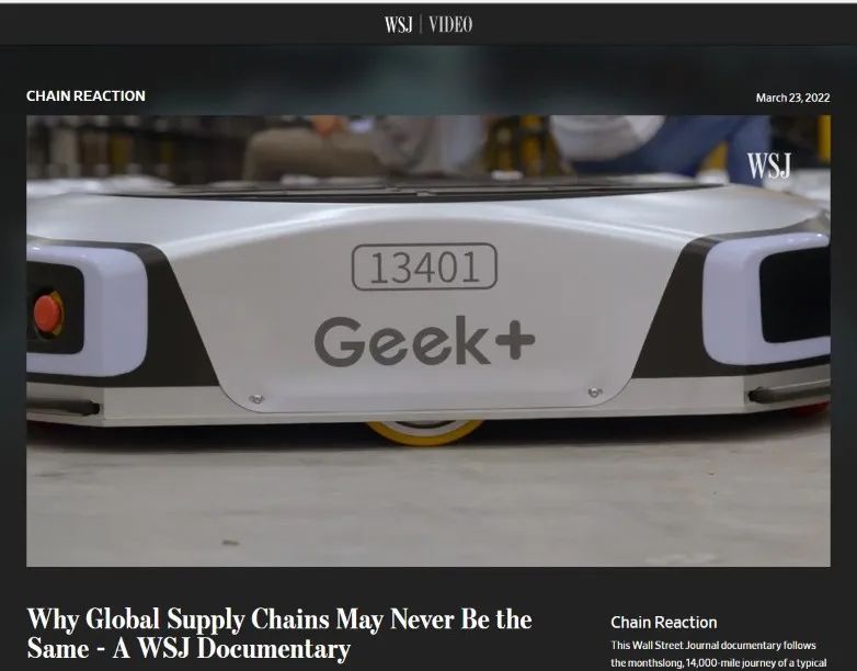 近日,國際著名商業(yè)財(cái)經(jīng)媒體The Wall Street Journal (華爾街日報(bào)) 聚焦全球供應(yīng)鏈的復(fù)雜世界,推出紀(jì)錄片《全球供應(yīng)鏈為何不復(fù)從前》。全球AMR引領(lǐng)者極智嘉(Geek+)驚艷亮相,向全世界展示了AMR機(jī)器人如何在全球供應(yīng)鏈智能化轉(zhuǎn)型升級中發(fā)揮重要作用,助力企業(yè)提高供應(yīng)鏈反脆弱能力,保持市場核心競爭力。
