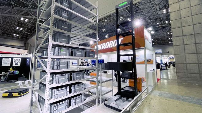 3月閉幕的日本國際機器人展iREX,海康機器人帶去了貨箱到人機器人(CTU)與潛伏機器人的接駁展示方案,將“貨到人”精準到“貨箱到人”,進一步提高物流效率和準確率。