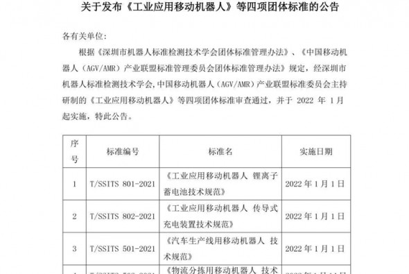 關(guān)于發(fā)布《工業(yè)應(yīng)用移動機器人》四項團體標(biāo)準(zhǔn)的公告