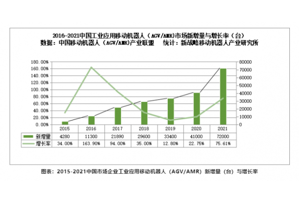 2021年中國市場企業整體銷售AGV/AMR72000臺,市場銷售額達到126億元。
