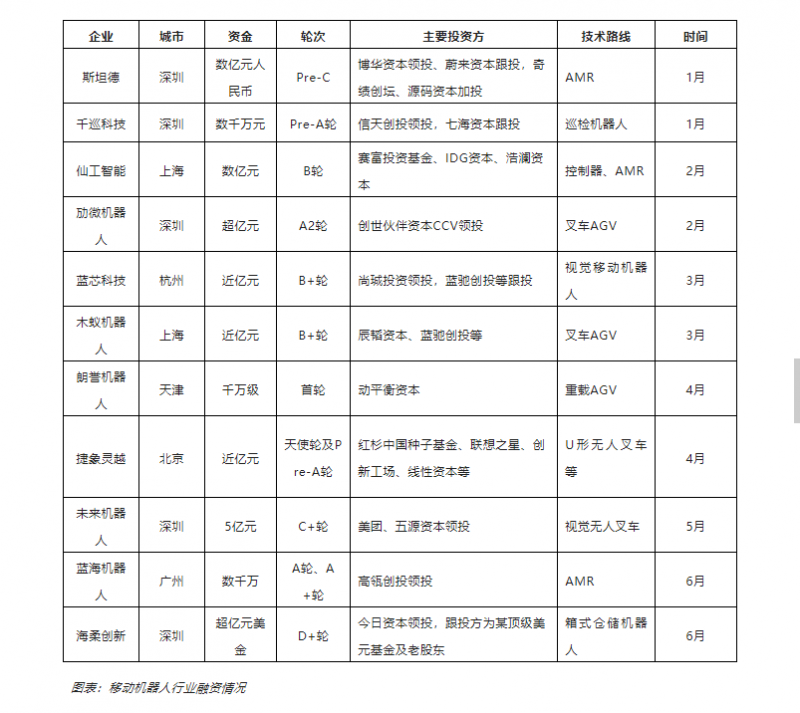 從資金投入來看,大部分企業(yè)融資金額都在億元級(jí)以上,其中,海柔創(chuàng)新與未來機(jī)器人兩家企業(yè)在上半年拿到了行業(yè)最多的融資。