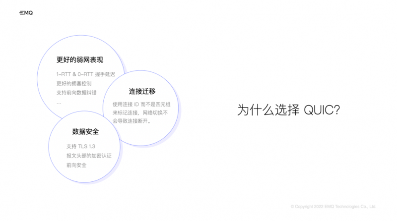 QUIC 作為底層傳輸協議,與 TCP 協議相比,在減少連接開銷與消息延遲的同時,提升了整體吞吐量和移動連接的穩定性,非常適用于物聯網消息傳輸場景。