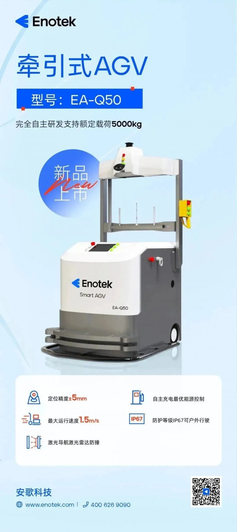 除此之外,安歌科技研發創新的步伐從未停歇,不斷豐富產品線,持續為客戶和生態鏈伙伴帶來更多優質可靠的智能設備,在今年連續發布了:牽引式AGV EA-Q50、平衡重式AGV EA-D15、環形RGV ER-S06三款新品,并對WMS/WCS進行了產品升級,它們分別有什么特點和優勢呢?本文將為您一一介紹!