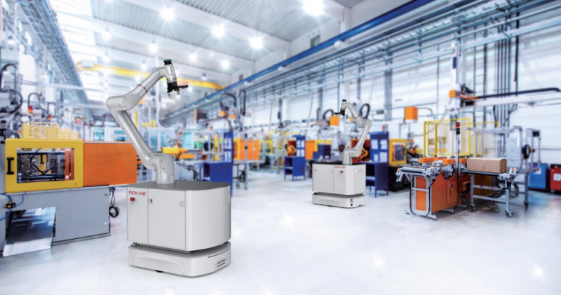 近日,珞石發布全新一代CMR系列復合機器人,可靈活搭配柔性協作機器人、移動底盤、2D/3D 視覺以及末端工具。機械臂搭載珞石柔性協作機器人xMate CR、ER、SR系列,負載 3-18 kg,工作范圍 580 mm-1300 mm;移動底盤載重300-600Kg,采用激光SLAM導航方式,能夠自主規劃路徑并構建環境地圖,無需對場地進行改造,適應性強。