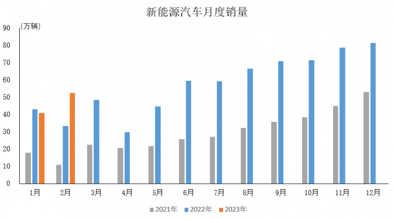 2023年1-2月,新能源汽車產銷分別完成97.7萬輛和93.3萬輛,同比分別增長18.1%和20.8%,市場占有率達到25.7%。從汽車行業發展趨勢來看,新能源汽車的增長速度未來會進一步加快。