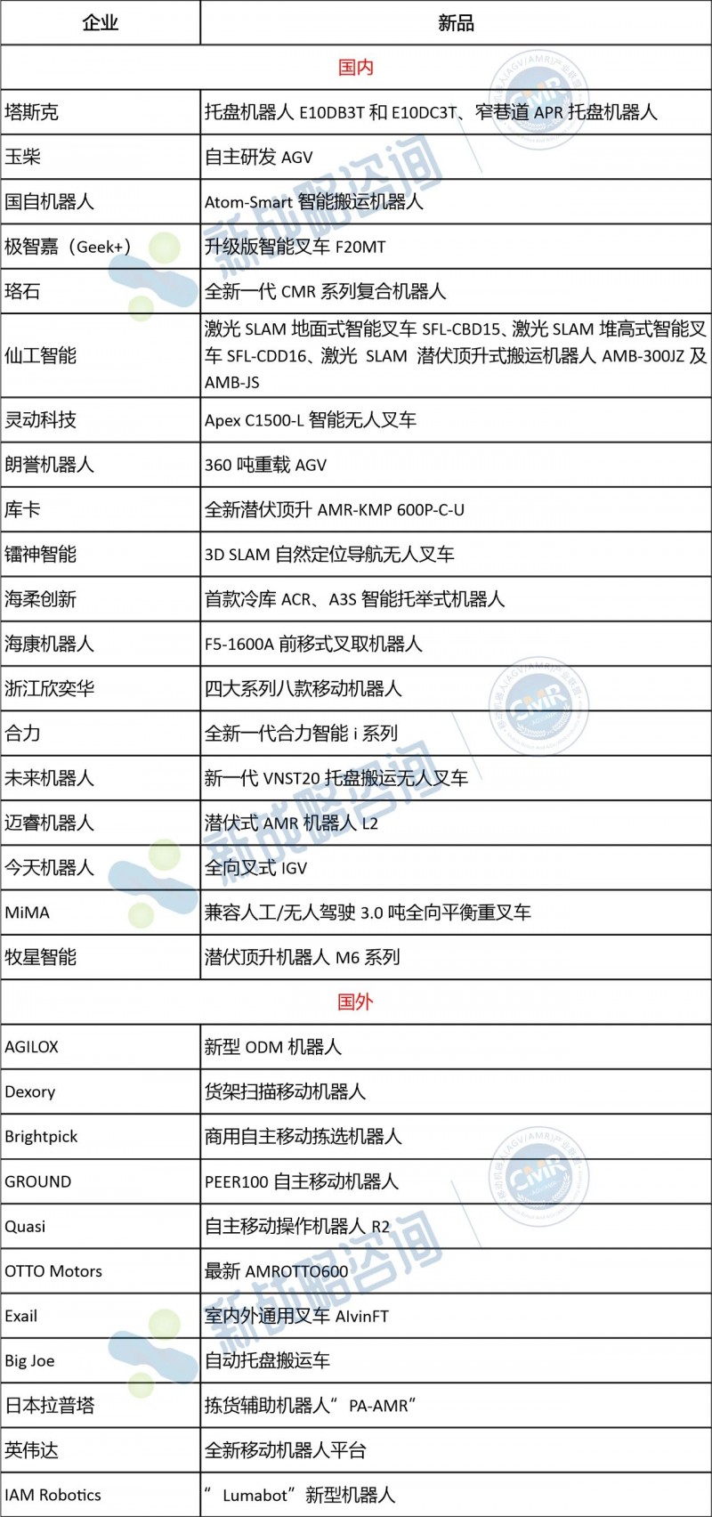 圖表:上半年AGV/AMR行業(yè)新品(不完全統(tǒng)計)