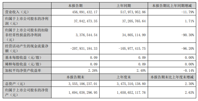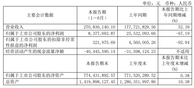 東杰智能8月29日發布半年度業績報告稱,2023年上半年營業收入約4.57億元,同比減少11.79%;歸屬于上市公司股東的凈利潤約3784萬元,同比增加1.71%;基本每股收益0.09元,同比增加0%。