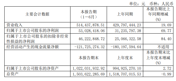 蘭劍智能8月24日晚間發布半年度業績報告稱,2023年上半年營業收入約5.14億元,同比增加19.69%;歸屬于上市公司股東的凈利潤約5303萬元,同比增加69.77%;基本每股收益0.73元,同比增加69.77%。