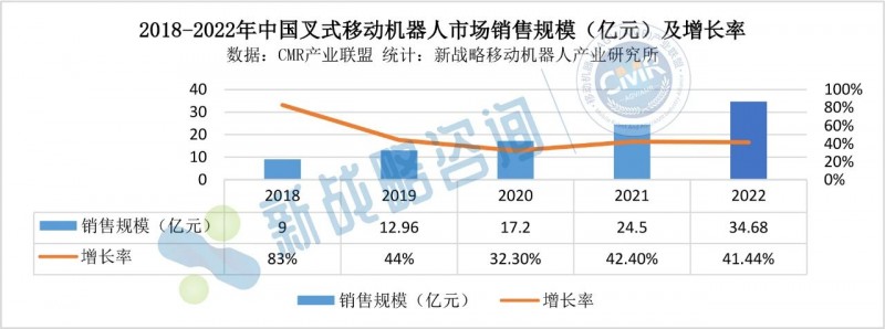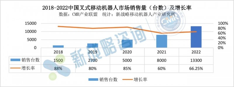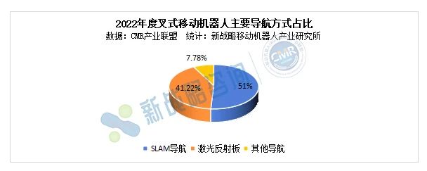 根據(jù)CMR產(chǎn)業(yè)聯(lián)盟數(shù)據(jù),新戰(zhàn)略移動(dòng)機(jī)器人產(chǎn)業(yè)研究所統(tǒng)計(jì),2022年,SLAM導(dǎo)航(激光+視覺)的無人叉車占比首次超過了激光有反射板叉車,成為市場(chǎng)應(yīng)用主流,占比為51%,激光反射板無人叉車增速不如SLAM導(dǎo)航產(chǎn)品,占比下降,為41.22%。