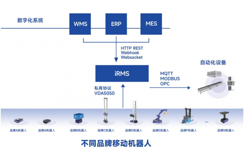當(dāng)前,面向倉儲領(lǐng)域,牧星可提供全系列的移動機(jī)器人產(chǎn)品:包括貨架到人、料箱到人、MIX貨到人解決方案等各種機(jī)器人智能倉儲綜合解決方案,以及開放的全場景機(jī)器人混合調(diào)度系統(tǒng)iRMS。