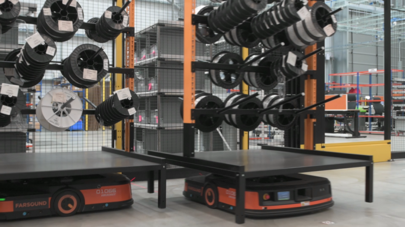 Farsound定制了多種貨架來滿足不同種類零部件的搬運需求;同時,海康機器人LMR可實現貨架的柔性適配。