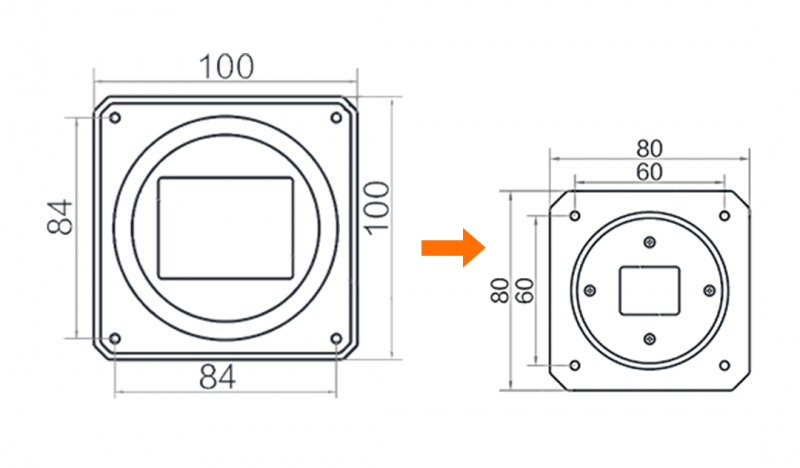 相較于現(xiàn)有1.01億相機(jī),全新1.03億相機(jī)整體尺寸縮小至80*80 mm,架設(shè)難度大幅下降,并且采用M58標(biāo)準(zhǔn)鏡頭接口,可轉(zhuǎn)接F接口使用,支持從千萬(wàn)級(jí)像素相機(jī)直接升級(jí),在不換鏡頭的條件下,升級(jí)視野尺寸。
