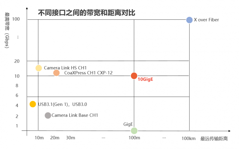相機(jī)采用10GigE萬(wàn)兆網(wǎng)協(xié)議接口,向下兼容千兆網(wǎng),功耗更低,傳輸距離更長(zhǎng),并且萬(wàn)兆網(wǎng)整體方案相較于Camera link和CoaXPress方案,復(fù)雜度和成本都有所降低。