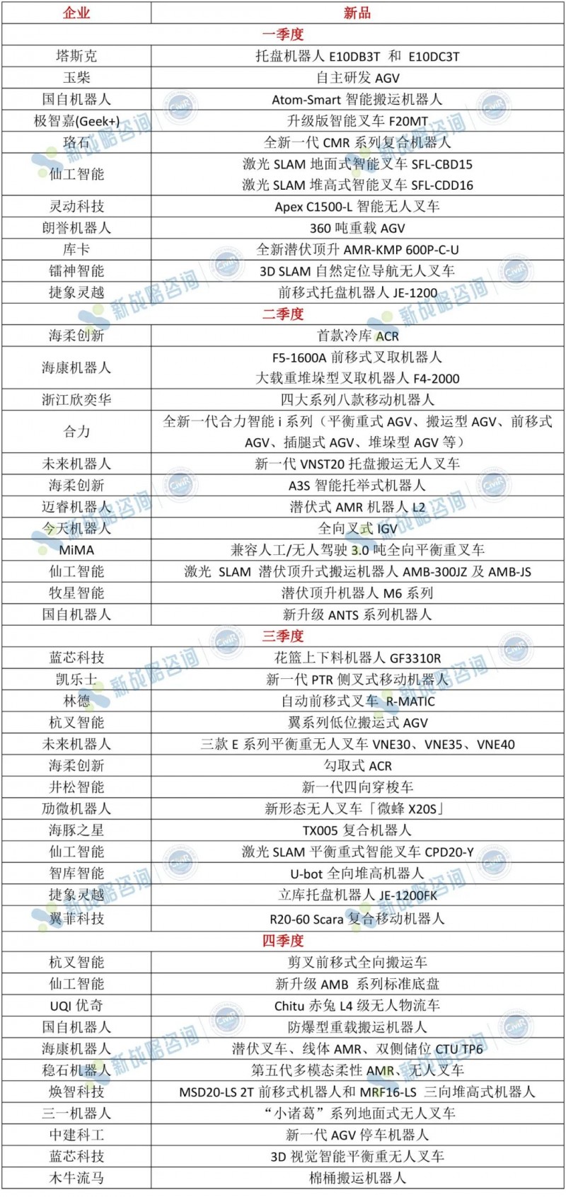 表:2023年AGV/AMR行業新產品(根據公開信息整理,如有未完善之處,請指正!)