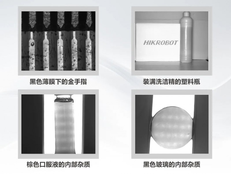 SWIR可以透過多種材料。如不同材質的物品,在特定的紅外波段下,會根據吸收、反射程度而呈現透明、半透明、白色、黑色等不同狀態,適用于同色材料分選,塑料內部填充物檢測、深色物品內部劃痕等。