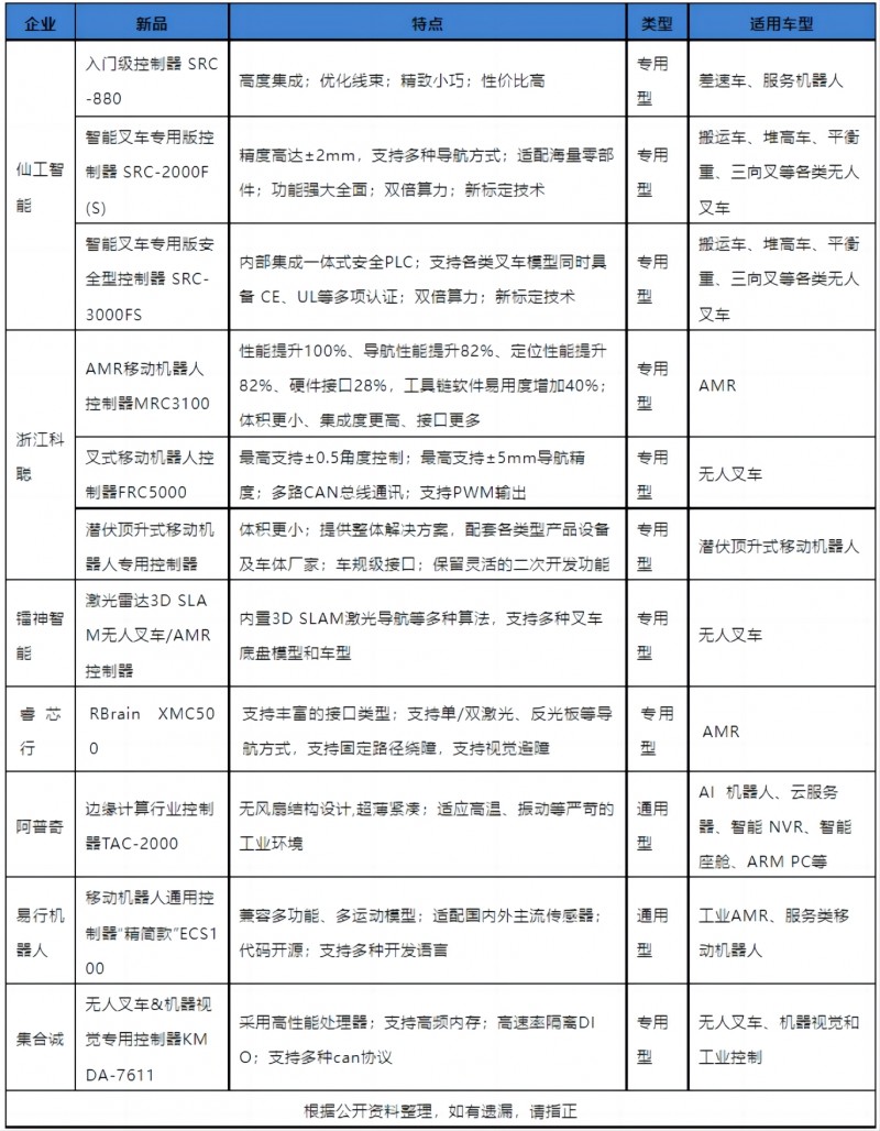 在剛結(jié)束的2023年,移動機(jī)器人智能化、柔性化與多樣化的發(fā)展趨勢日益顯現(xiàn),作為重要的核心零部件,移動機(jī)器人專用控制器市場也呈現(xiàn)出了全新變化。為不斷地適應(yīng)行業(yè)發(fā)展變化,滿足本體企業(yè)發(fā)展業(yè)務(wù)需要,一些控制器廠商正在不斷迭代革新產(chǎn)品。根據(jù)新戰(zhàn)略移動機(jī)器人產(chǎn)業(yè)研究所不完全統(tǒng)計,2023年,國產(chǎn)移動機(jī)器人控制器廠商先后推出了10余款新品。