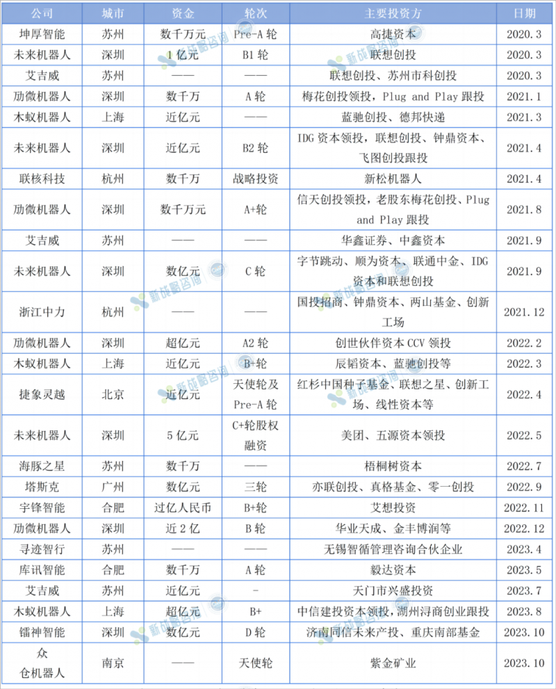 圖表:2020-2023年無人叉車企業(yè)融資事件(根據公開信息整理,如有未完善之處,請指正)