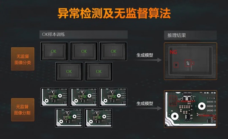 面對缺陷檢測初期樣本稀缺,導致模型學習無法穩定收斂的挑戰,VM4.4創新推出AI異常檢測類算法工具。通過集成無監督圖像分類與無監督圖像分割算法,用戶僅需提供少量正常樣本,就能快速準確地識別異常缺陷,大大加速模型收斂過程,顯著縮短項目落地時間。