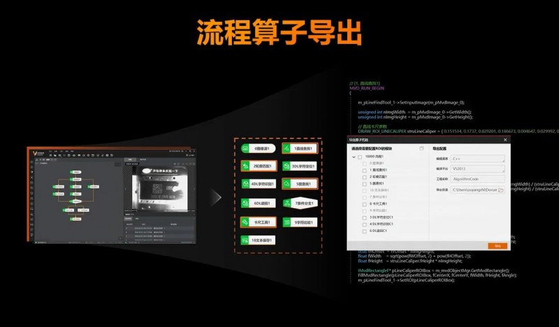 為進一步降低二次開發難度,VM4.4新增算子導出功能,開發者可以把搭建好的VM圖形化方案導出成算子接口級的調用代碼,幫助用戶更快理解VM的算子開發邏輯,同時減少編碼量。