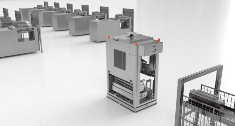 一體式方案,根據(jù)不同料盒形態(tài)的轉(zhuǎn)運(yùn)需求,應(yīng)用適配的移動機(jī)器人完成相應(yīng)工序間的物料轉(zhuǎn)運(yùn)。由于物料是直接存放在一體式機(jī)器人的倉位內(nèi),當(dāng)出現(xiàn)前后工序間物料上下料節(jié)拍不匹配的場景時,一體式機(jī)器人可將物料存放在緩存站內(nèi),用于平衡工序間的生產(chǎn)節(jié)拍。