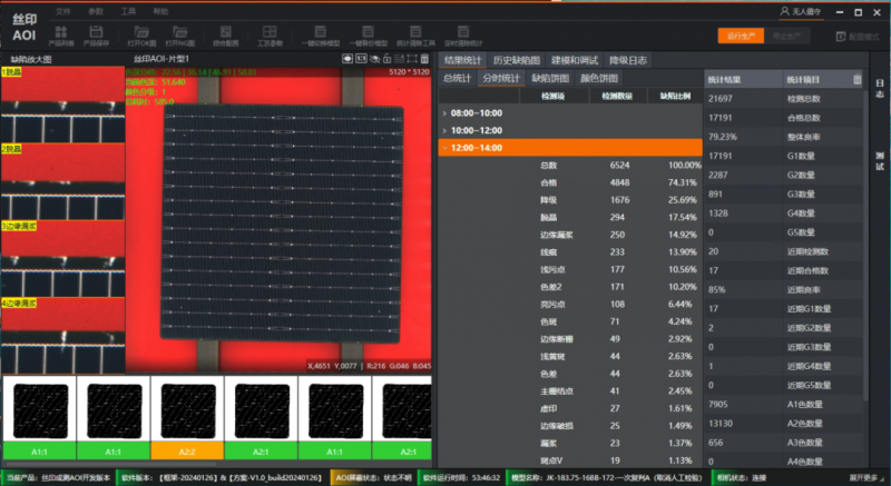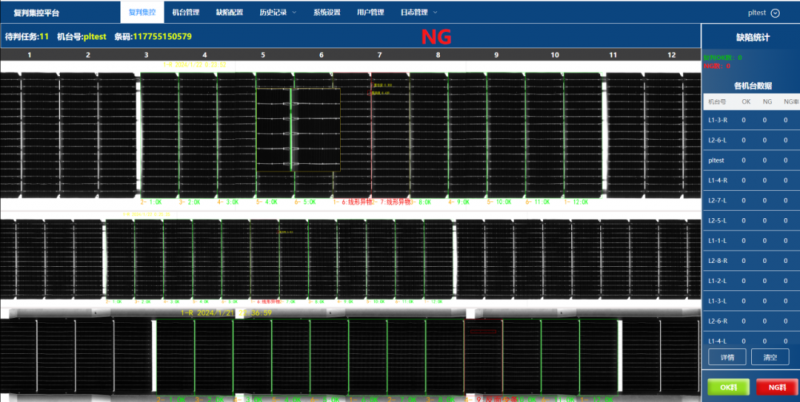 為了更好地追溯電池組件的全流程質(zhì)量,海康機(jī)器人定制開發(fā)了光伏組件決策看板,從單站檢測到各個機(jī)臺的集控復(fù)判,整個工廠的數(shù)據(jù)匯總、運(yùn)行狀態(tài)一目了然。