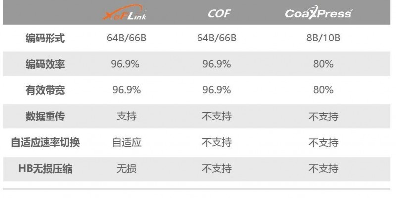 XoFlink采用64/66B編碼形式,效率以及最大帶寬大幅提升。另外XoFlink協(xié)議支持HB無損壓縮算法的植入,可以更大程度提升鏈路帶寬。并且XoFlink協(xié)議支持數(shù)據(jù)重傳和自適應速度切換,能有效保證傳輸穩(wěn)定性。