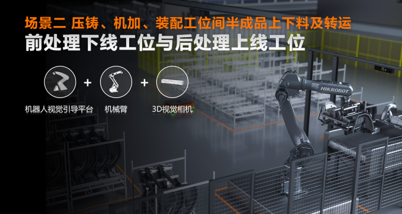 壓鑄件下線后,海康機器人采用機械臂輔助方式,并通過AMR實現壓鑄件緩存區、機加和裝配環節的無縫對接,確保物流與制造的協同。