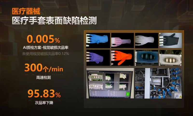 在器械領域醫(yī)用手套表面缺陷檢測的項目實踐中,海康機器人通過CCD面陣相機、AI深度學習等技術,實現(xiàn)了綜合缺陷漏檢率小于十萬分之五的高精度檢測,大幅提高了產(chǎn)線良率、效率,降低客訴率。