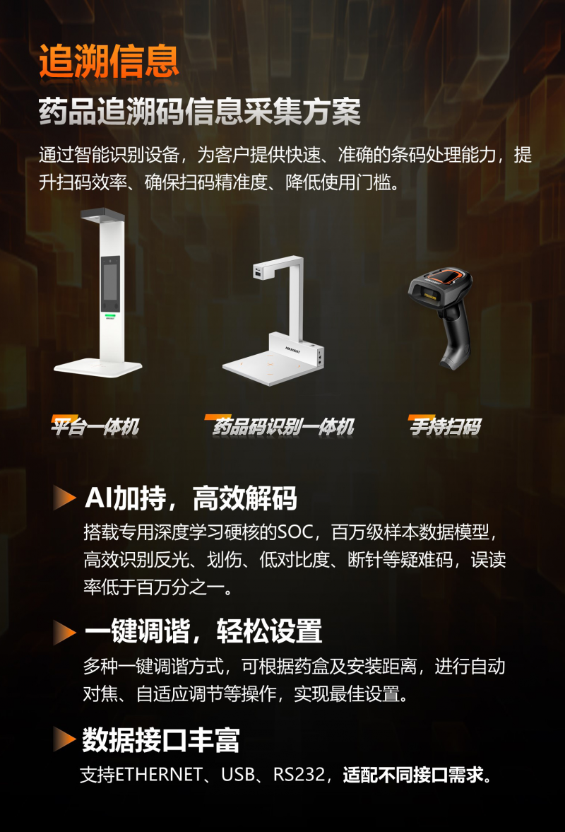 此外,海康機器人還積極響應政策要求,針對藥品追溯碼應掃盡掃的需求,推出藥品追溯碼信息采集方案,助力行業(yè)客戶提升掃碼效率、確保掃碼精準度、降低使用門檻。
