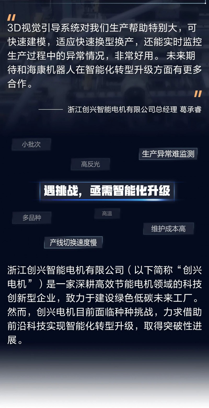 創興電機從需求匹配、生產效率、異常監測、數字化管理、建設成本等多個維度考慮,最終選擇與海康機器人攜手,以工業4.0為標準打造未來工廠。