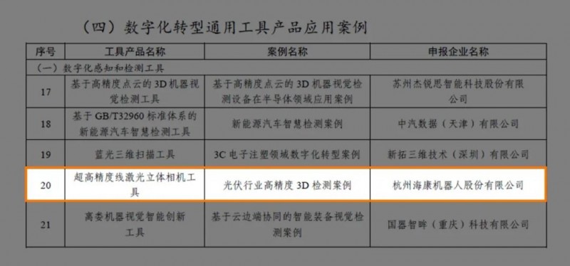 近日,工業(yè)和信息化部辦公廳公布2024實(shí)數(shù)融合典型案例名單,海康機(jī)器人“超高精度線激光立體相機(jī)工具-光伏行業(yè)高精度3D檢測(cè)案例”脫穎而出,入選其中的數(shù)字化轉(zhuǎn)型通用工具產(chǎn)品應(yīng)用案例名單。