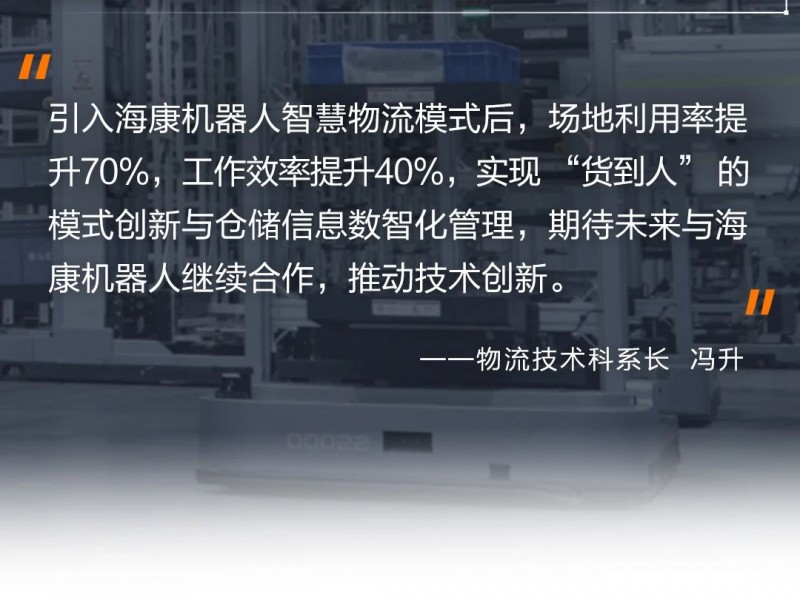 采用料箱機器人+亮燈同步揀選的集成化應(yīng)用模式,減少了地面存儲面積,降低了作業(yè)難度,使操作更簡潔、效率更高。