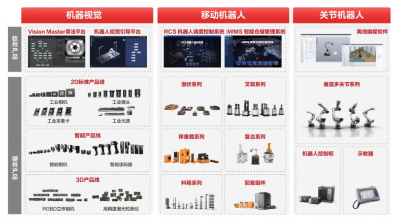 海康機(jī)器人于2016年正式成立,業(yè)務(wù)主要分為三大板塊:機(jī)器視覺、移動(dòng)機(jī)器人、關(guān)節(jié)機(jī)器人。